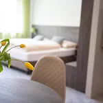 Redelijk geprijsde accommodatie. De plaats vond ik geweldig, het was een briljant verblijf. Het bed was superfijn en alles in de kamer was zeer goedkoop. De locatie was de beste op loopafstand van het Arkade Einkaufpark. De check-in ervaring was gemakkelijk en het personeel was nuttig.